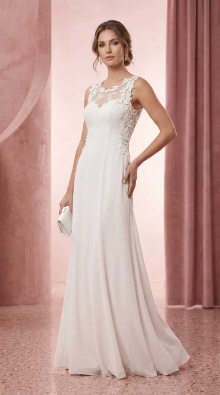 Κλασικό, φίνο και απόλυτα θηλυκό. Για νύφες που θέλουν κομψότητα χωρίς υπερβολές.