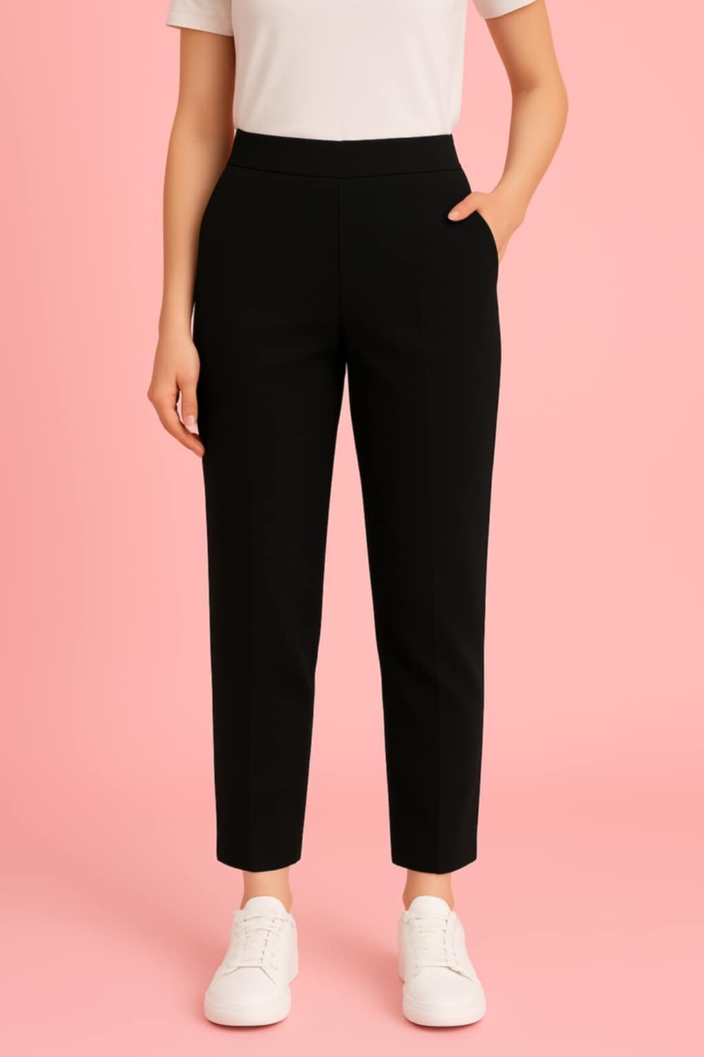 .2 .Γυναικείο Ψηλόμεσο Υφασμάτινο Παντελόνι κοστουμιού με Λάστιχο – Καθημερινό & Office Look