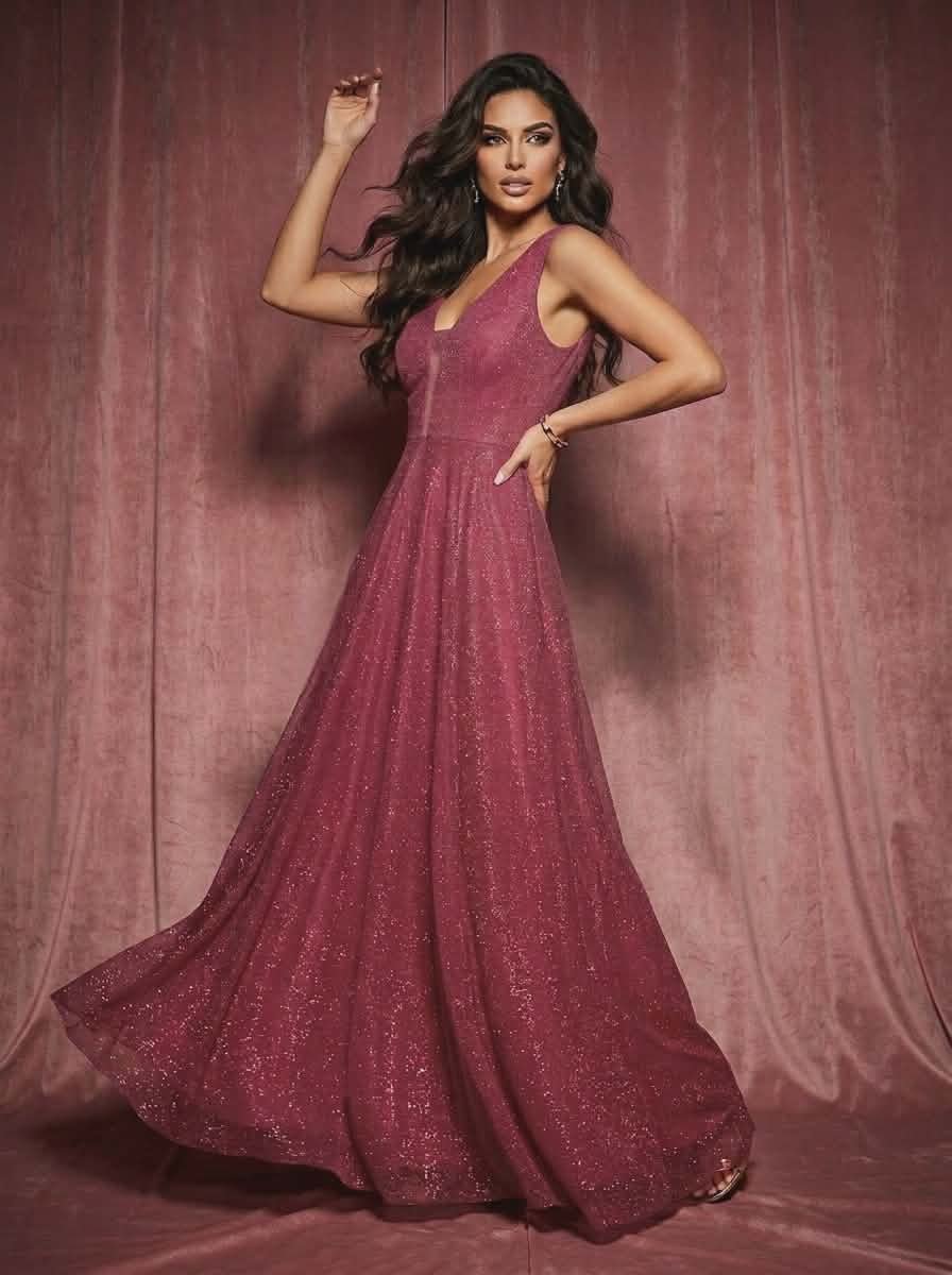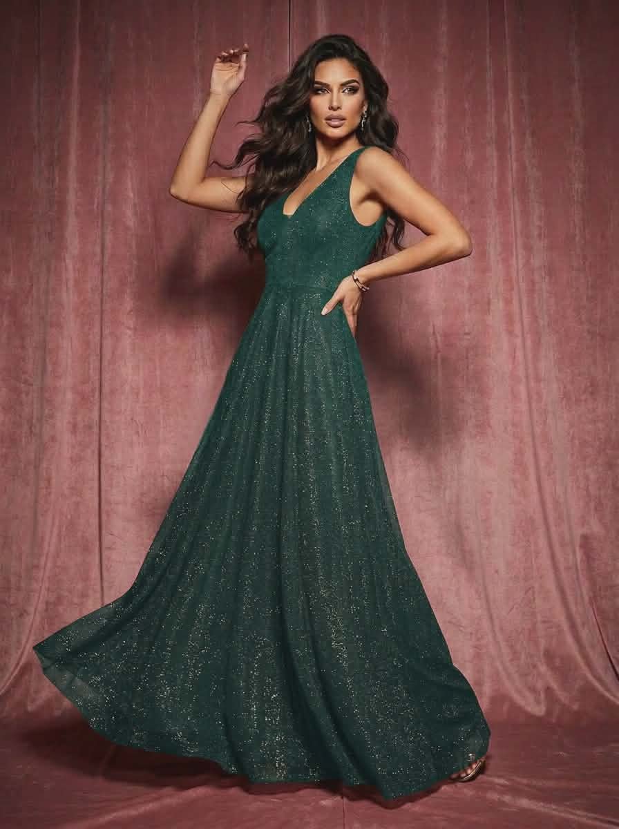 . 1 . Maxi Glitter Βραδινό Φόρεμα με V Ντεκολτέ – Διαθέσιμο σε 10 Χρώματα