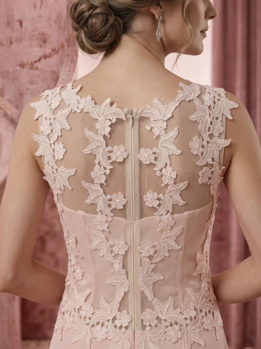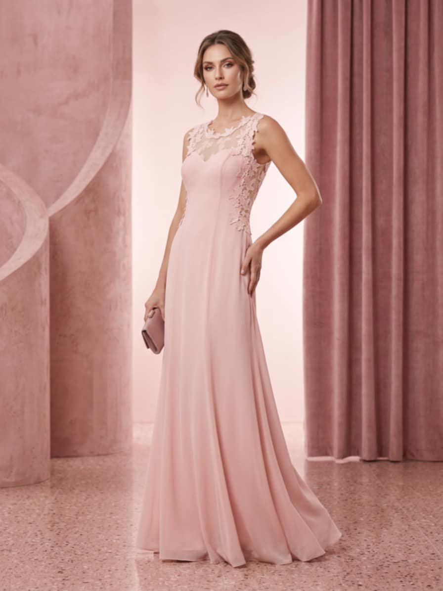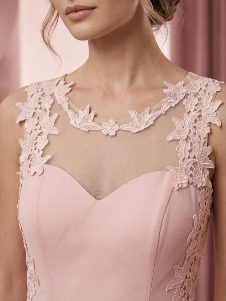 Οι δαντελένιες λεπτομέρειες αναδεικνύουν το επάνω μέρος του σώματος, ενώ η ανάλαφρη φούστα προσφέρει κίνηση και κομψότητα σε κάθε βήμα. Ένα ιδανικό φόρεμα για γάμους, βαπτίσεις και επίσημες βραδινές εμφανίσεις.