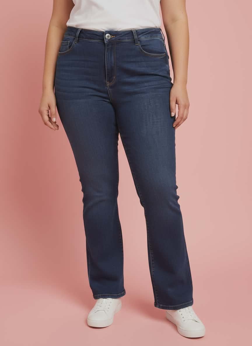 Ψηλόμεσο plus size τζιν με εξαιρετική ελαστικότητα που αγκαλιάζει τις καμπύλες χωρίς να πιέζει.