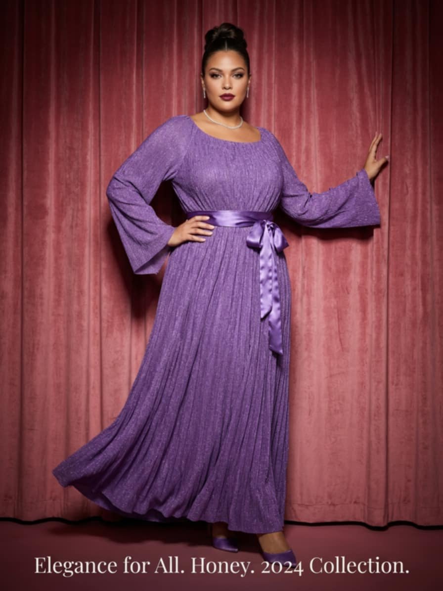 48. Plus Size Lurex Evening Dress – Μωβ / Πετρόλ Μεταλλικό Φόρεμα