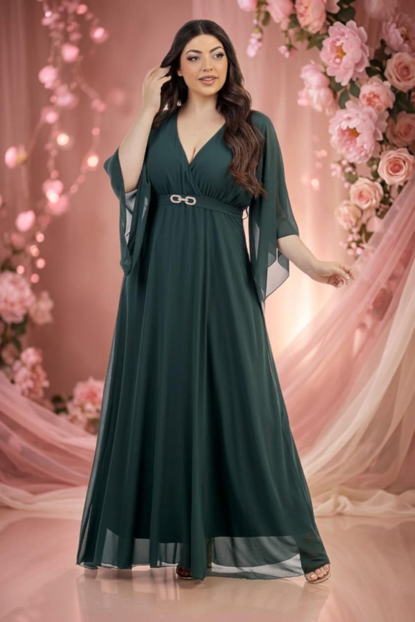 61. Plus Size Αέρινο Φόρεμα – Maxi με Ζώνη