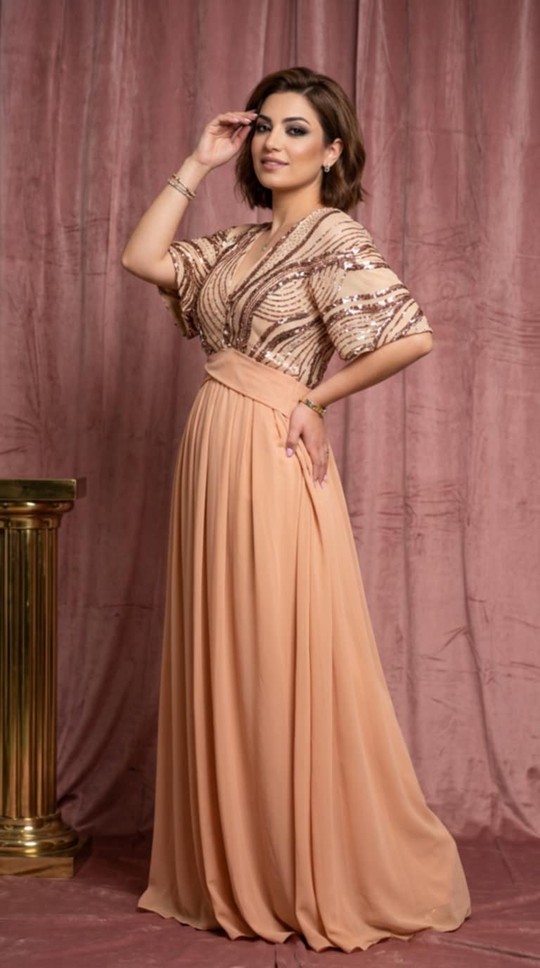 84. Αέρινο Maxi Φόρεμα με Παγέτα & Ανοιχτή Πλάτη – Elegant Evening Look
