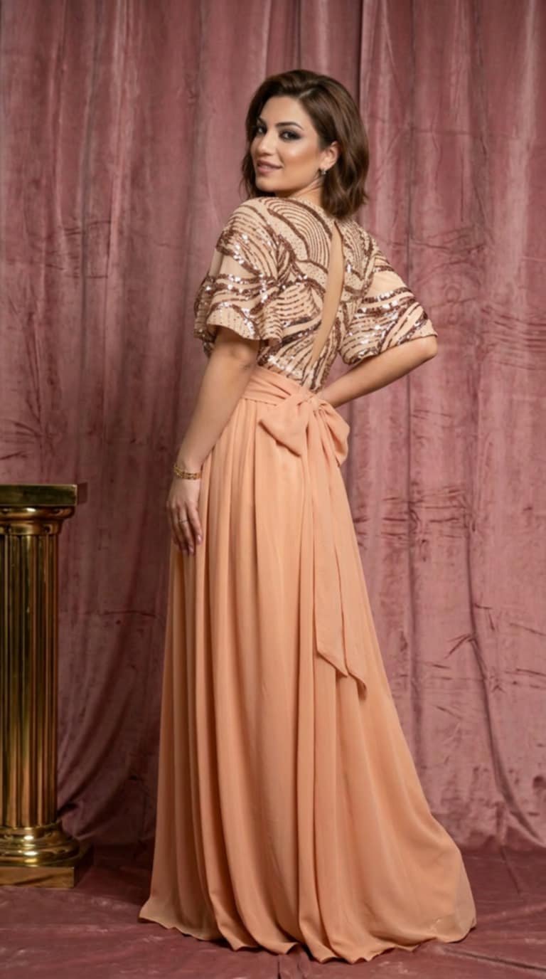Αέρινο maxi φόρεμα σε εντυπωσιακό εμπριμέ σχέδιο με silky υφή που χαρίζει πολυτέλεια και κίνηση σε κάθε βήμα. Τα μανίκια με κρόσσια δίνουν fashion χαρακτήρα, ενώ η ρευστή γραμμή αγκαλιάζει το σώμα χωρίς να το πιέζει.